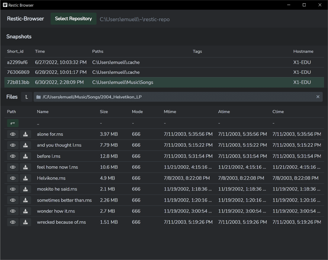 CommunityShowcaseRestic Browser版本:v2.11.0Restic Browser Restic-Browser - 一个简单的、跨平台的 restic 备份 GUI ,用于浏览和恢复 restic 存储库。